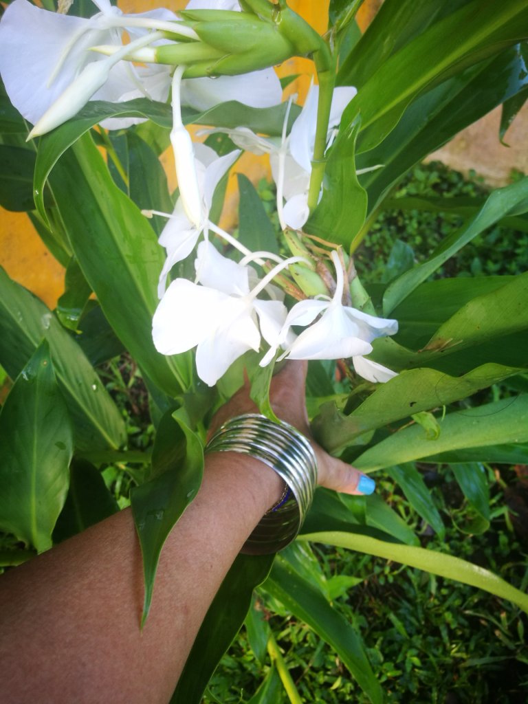 Hace un año visité a Paul Montesino y su esposa Anay Martin, la Chiqui me regaló el bulbo de la mariposa, y aquí están sus flores, significa que tengo un pedacito de Santi Espíritu en mi casa, que representa a toda esa buena gente que en esa casa quiero mucho!