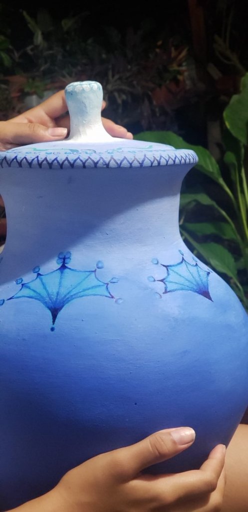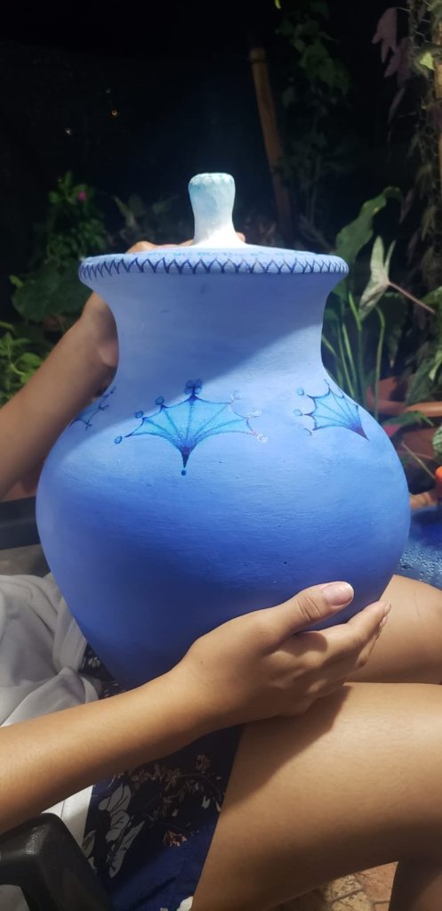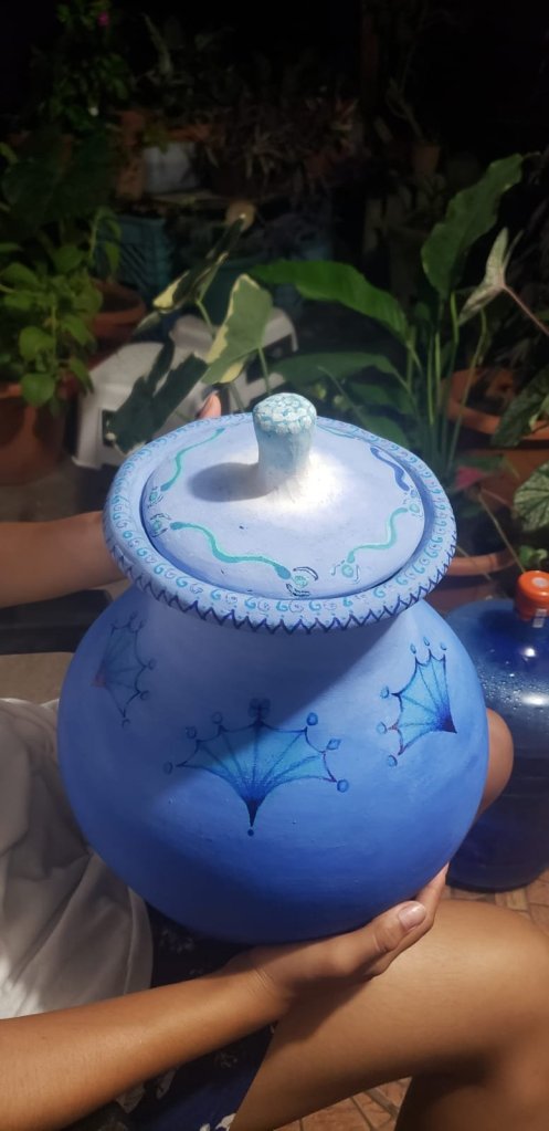 He querido compartirles esta bella sopera que mi ahijadita, de 13 años, se inspiró y la decoró para recibir su Olókun. La encuentro muy bella!